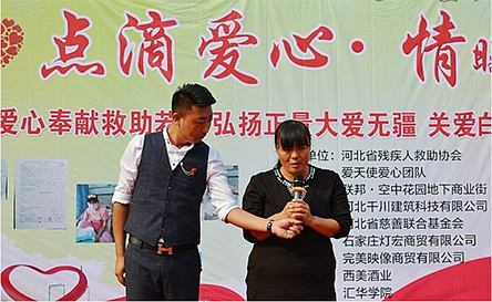10月17日,由河北省残疾人救助协会、爱天使-爱心团队、联邦空中花园地下商业街、共同主办的以“点滴爱心·情暖人间-爱心奉献救助若男弘扬正量大爱无疆”为主题的慈善公益活动在石家庄举行。本次活动得到了河北千川建筑科技有限公司、河北省慈善联合基金会、河北公益网、石家庄灯宏商贸有限公司、完美映像商贸有限公司、西美酒业、汇华学院、安琦国际舞蹈、爱心人士张巧凤等爱心单位和个人的大力支持。