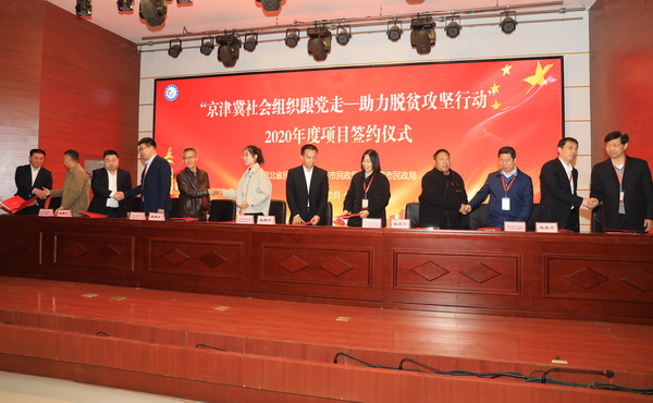 会上,有12个社会组织签订了助力脱贫攻坚帮扶项目。
